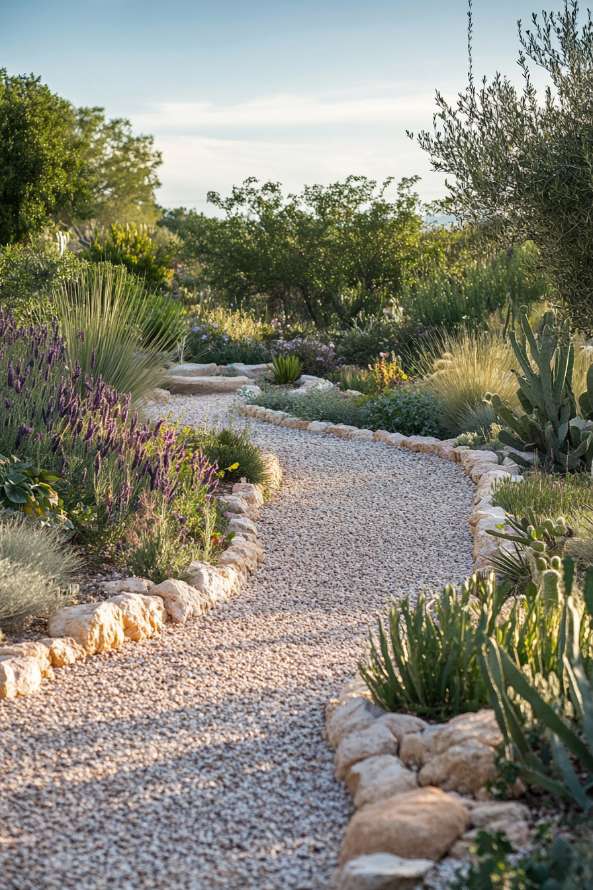 (El Mediterráneo Resiliente es la respuesta elegante al cambio climático. Jardines que se adaptan al calor y la sequía con inteligencia: sombra, especies autóctonas, grava, piedra y plantación estratégica.
