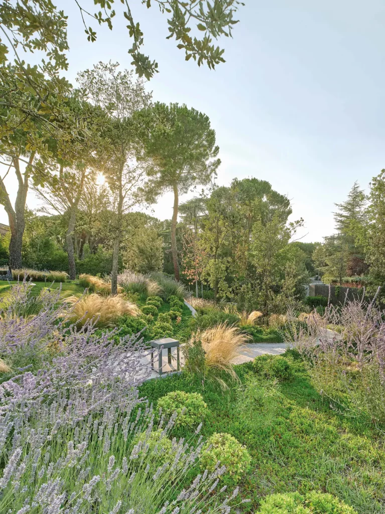 Es uno de los estilos más demandados en paisajismo 2026 porque logra algo difícil: naturaleza libre con control estético.